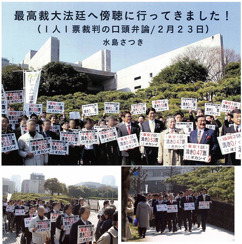 少し汗ばむほどの暖かい陽気に恵まれた弁論期日当日。12時の集合時間になるとあれよあれよと100名以上のサポーターが集まり、写真でもお分かりの通り、各自が0.何票のプラカードを持ち、圧巻のパレードを行いました。