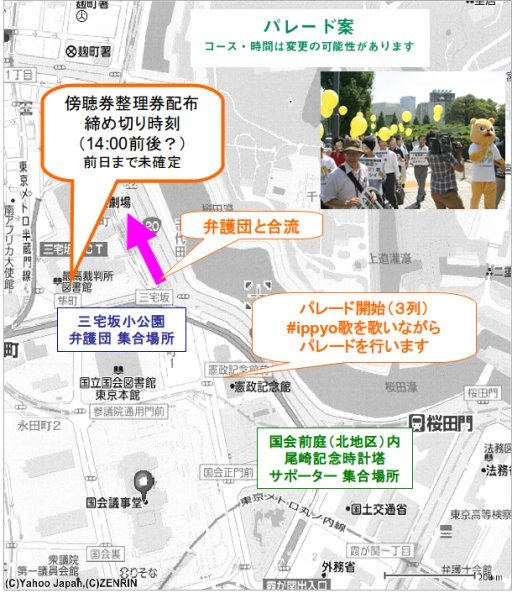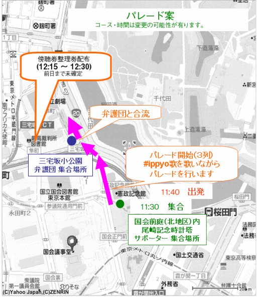 (国会前庭(北地区)内尾崎記念:時計塔下にお集まり下さい。前回同様、現地でプラカードの受け渡しをいたします)