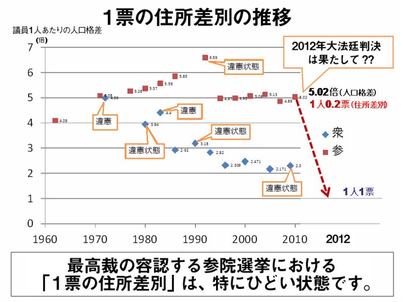 今後出される最高裁判決で重要なのは、「違憲」か「違憲状態」かではなく、その理由が、「一人1票(人口比例)であるか否か」です。