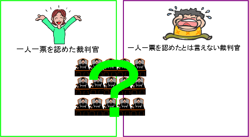 大法廷判決では、どの裁判官が一人一票に賛成なのか、どの裁判官が一人一票を認めたとは言えないかが明らかになります。