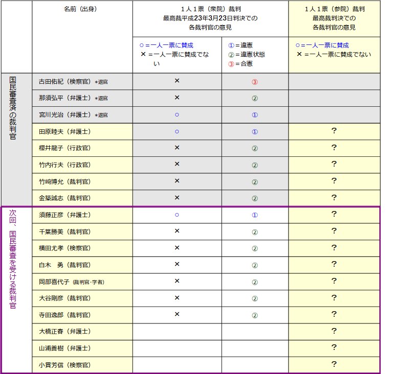 多くの国民が、1人1票に関する各最高裁裁判官の意見を参考に次回国民審査の投票ができるよう、判決の内容を広く伝えて参りましょう。