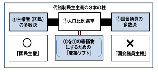 なぜなら、権力の行使(立法、内閣総理大臣の指名等)は、憲法に基づいて「正当に選挙された国会における代表者」によらなければならないからです。